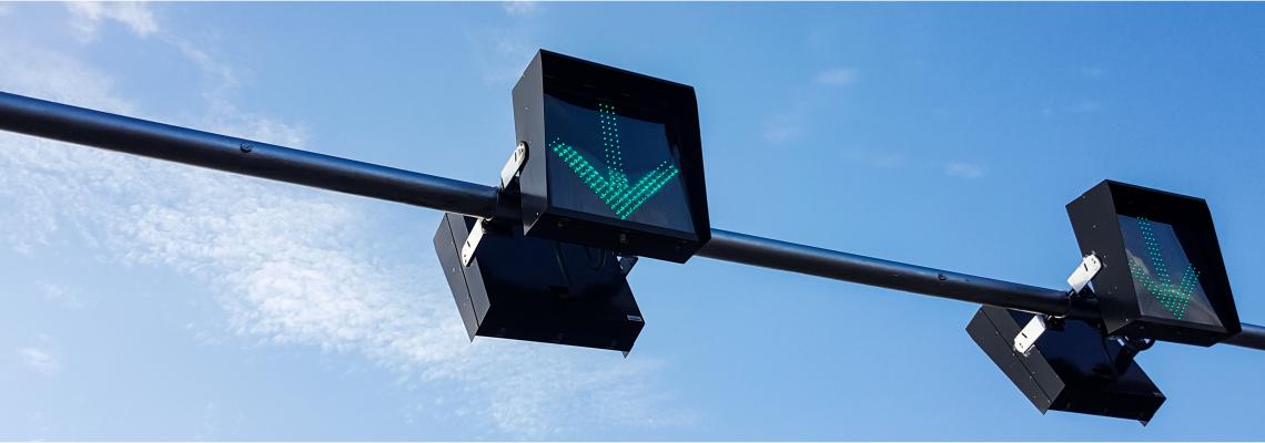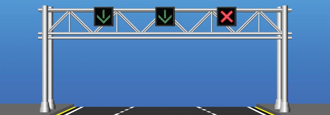 Signaux destinés à la gestion d’axes sur les routes à plusieurs voies en cas de fermeture temporaire de voies de circulation. Des flèches vertes ou jaunes ainsi que des croix rouges placées au-dessus des voies sont utilisées pour la signalisation.