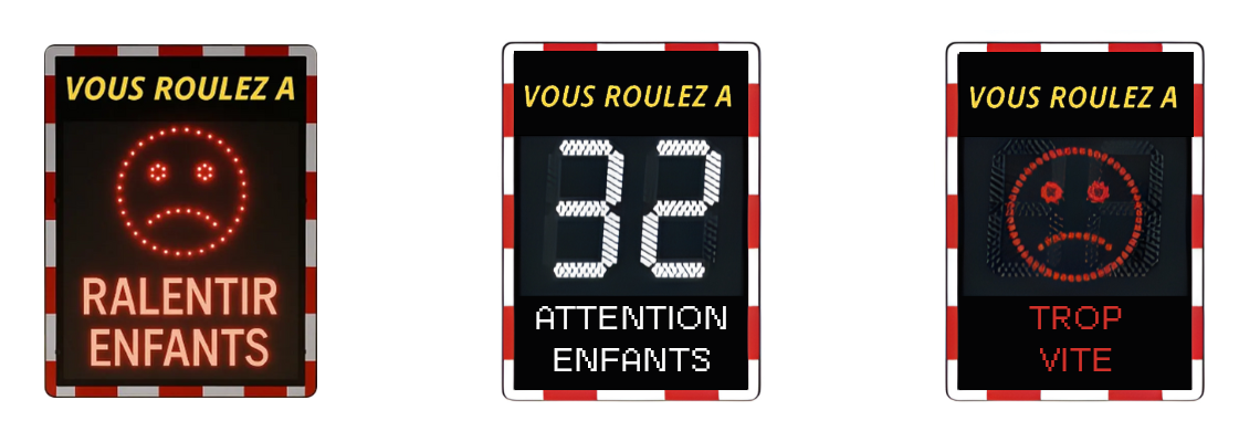 Le Viasis LITE PLUS utilise l’effet Doppler pour mesurer la vitesse des véhicules et avertir les conducteurs à l’aide d’un affichage LED grand format multicolore. L’objectif est de sensibiliser chaque conducteur à sa vitesse. L’écran inférieur multicolore peut afficher des textes ou symboles personnalisables.